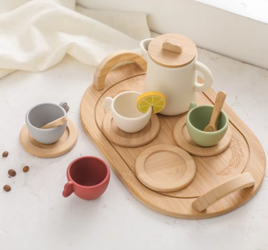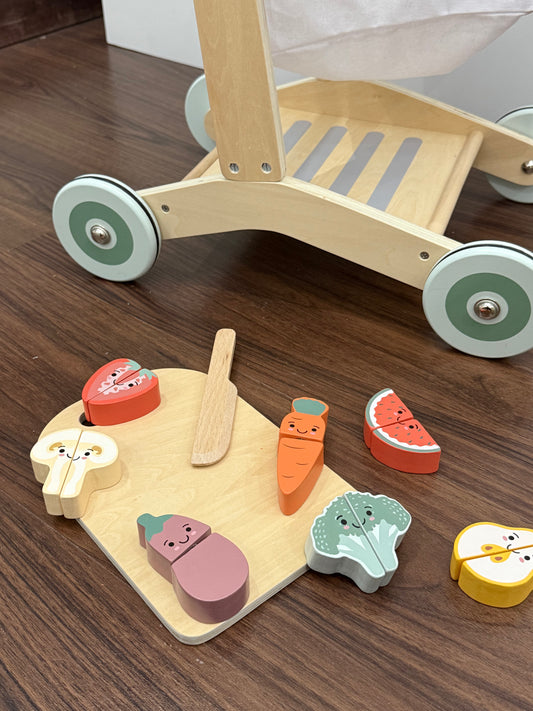 Carrito de Súper de Madera + Set de Frutas y Verduras para Cortar
