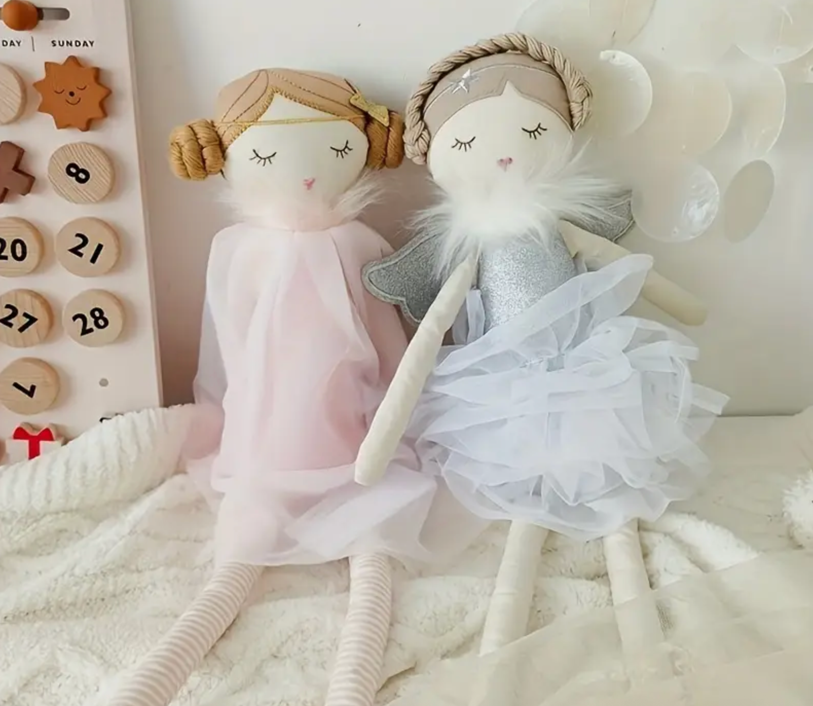 Delicadas y llenas de encanto, estas muñecas de tela están hechas para acompañar a tu peque en sus juegos y sueños. Con vestidos suaves de tul, detalles brillantes y alas mágicas, se convierten en el regalo perfecto para estimular la imaginación y el juego simbólico.