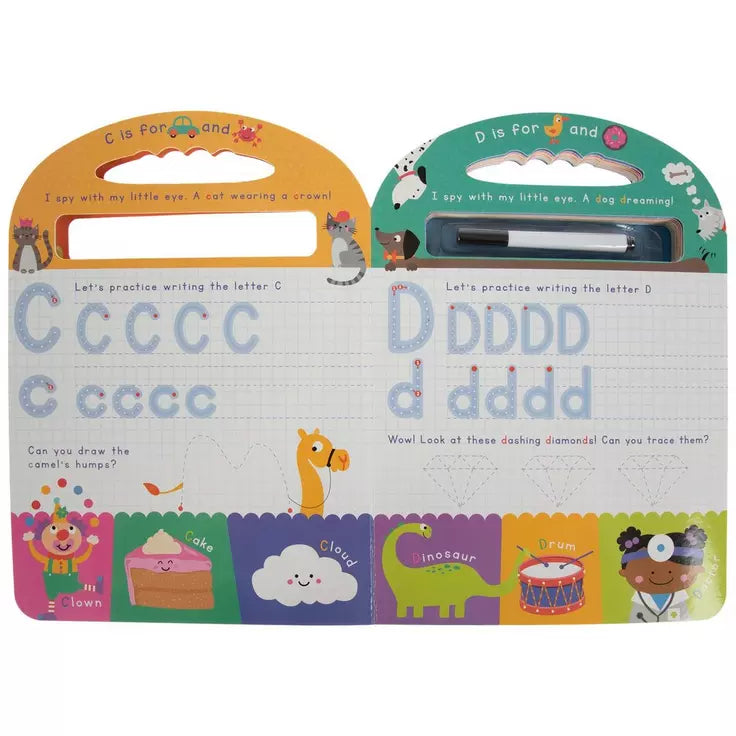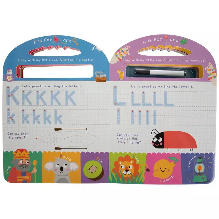 Libro interactivo para que los peques practiquen el abecedario y los números trazando letras y dibujos con el marcador incluido. Perfecto para desarrollar la coordinación, el reconocimiento de letras y números y habilidades de escritura temprana a partir de 4 años