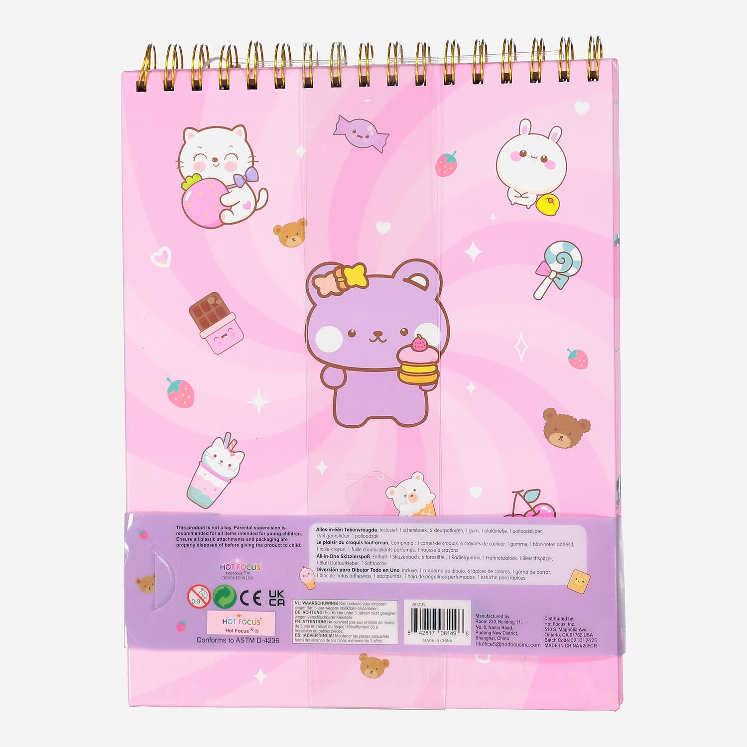 Este set incluye sketchbook de 80 hojas, lápices de colores, goma, sacapuntas, notas adhesivas, stickers con aroma y estuche. Perfecto para dibujar, colorear y dejar volar la imaginación ✏️