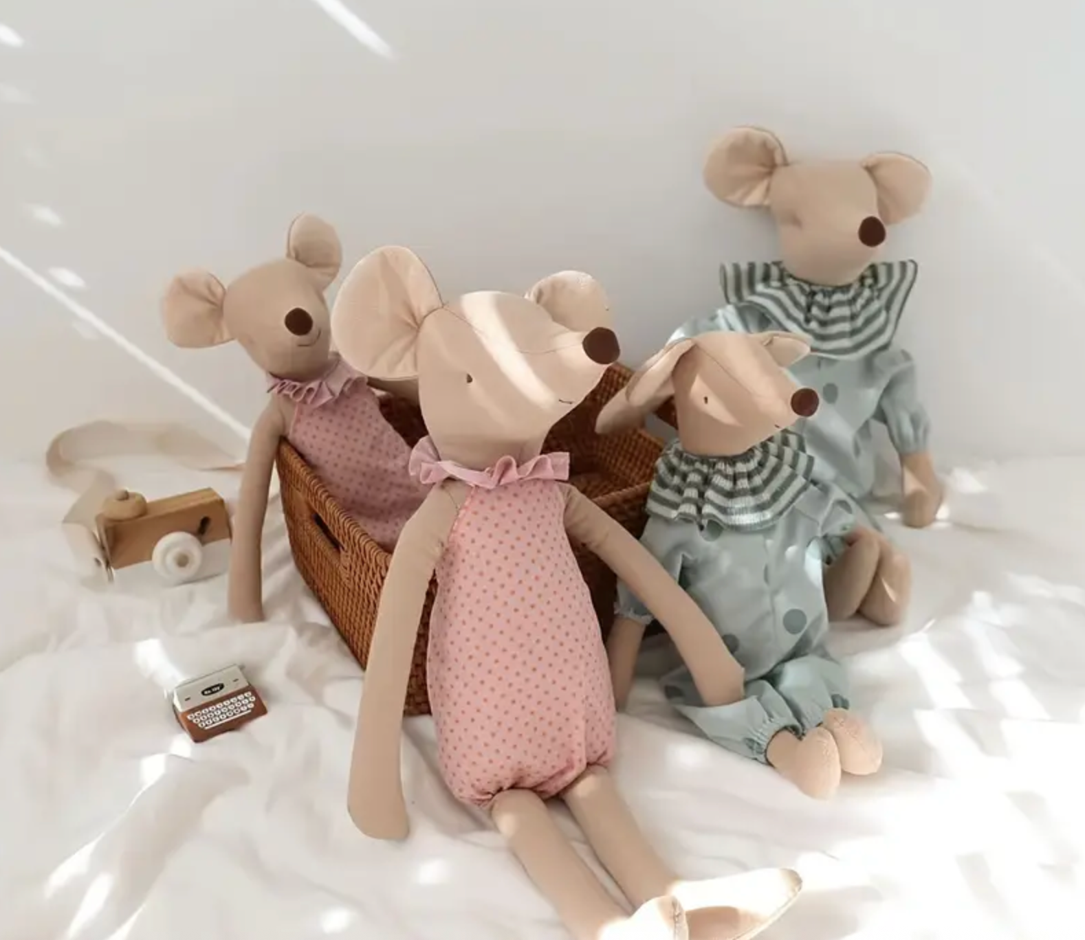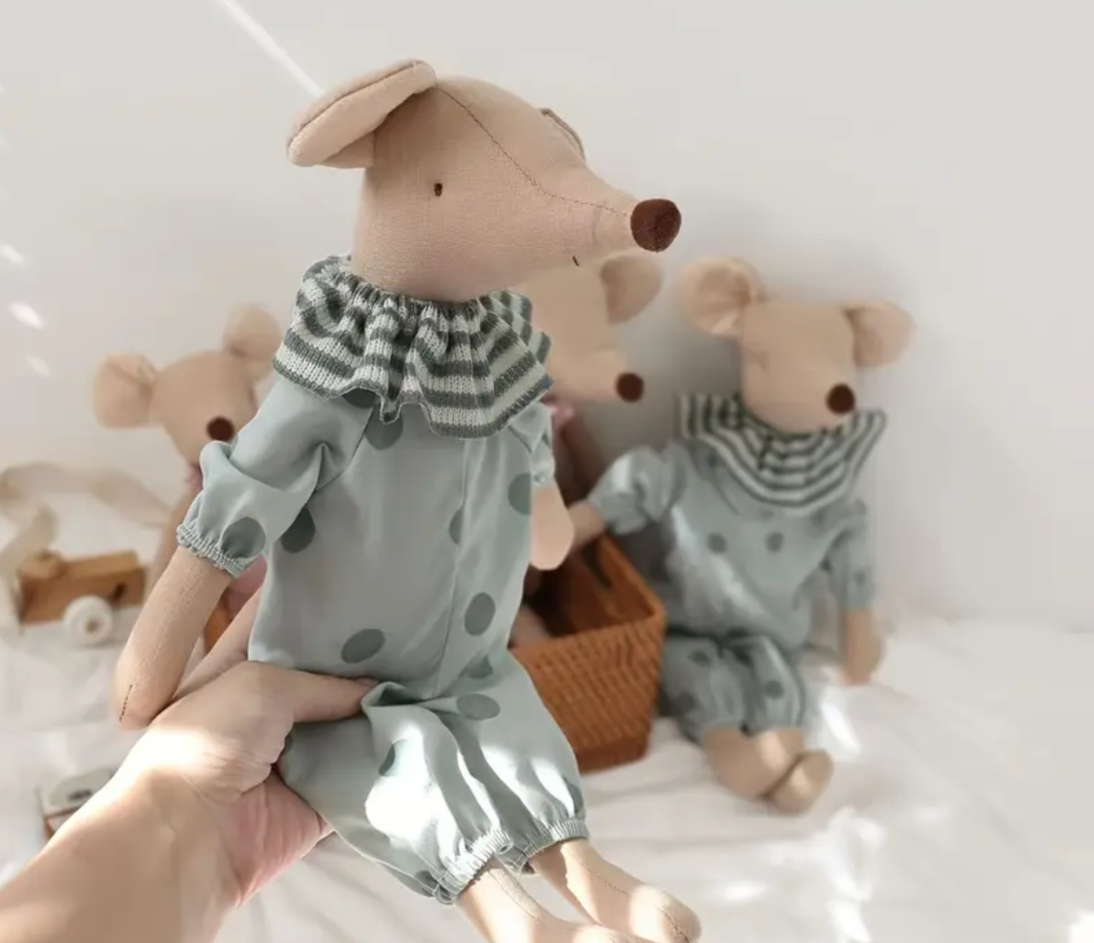 Suaves, tiernos y llenos de encanto, estos ratoncitos de tela son el compañero perfecto para tu peque. Confeccionados en algodón, con detalles delicados y ropa adorable, se convierten en un juguete especial para acompañar en el juego y la hora de dormir.